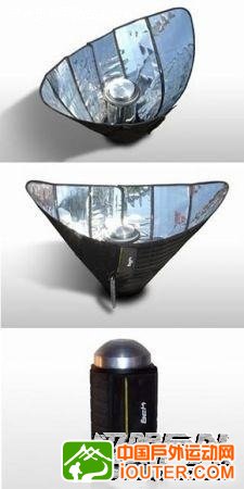 使用BCK太阳灶,你将不再像原始人那样用木柴点火了。它非常像一个热水瓶,但包括了一个太阳能板,可以将太阳射线聚焦于中心位置。启用时BCK太阳灶可达到90摄氏度温度,能像传统炉灶一样达到恒定的食物烹饪温度。当然,你也可以用这个太阳灶对水进行杀菌消毒。